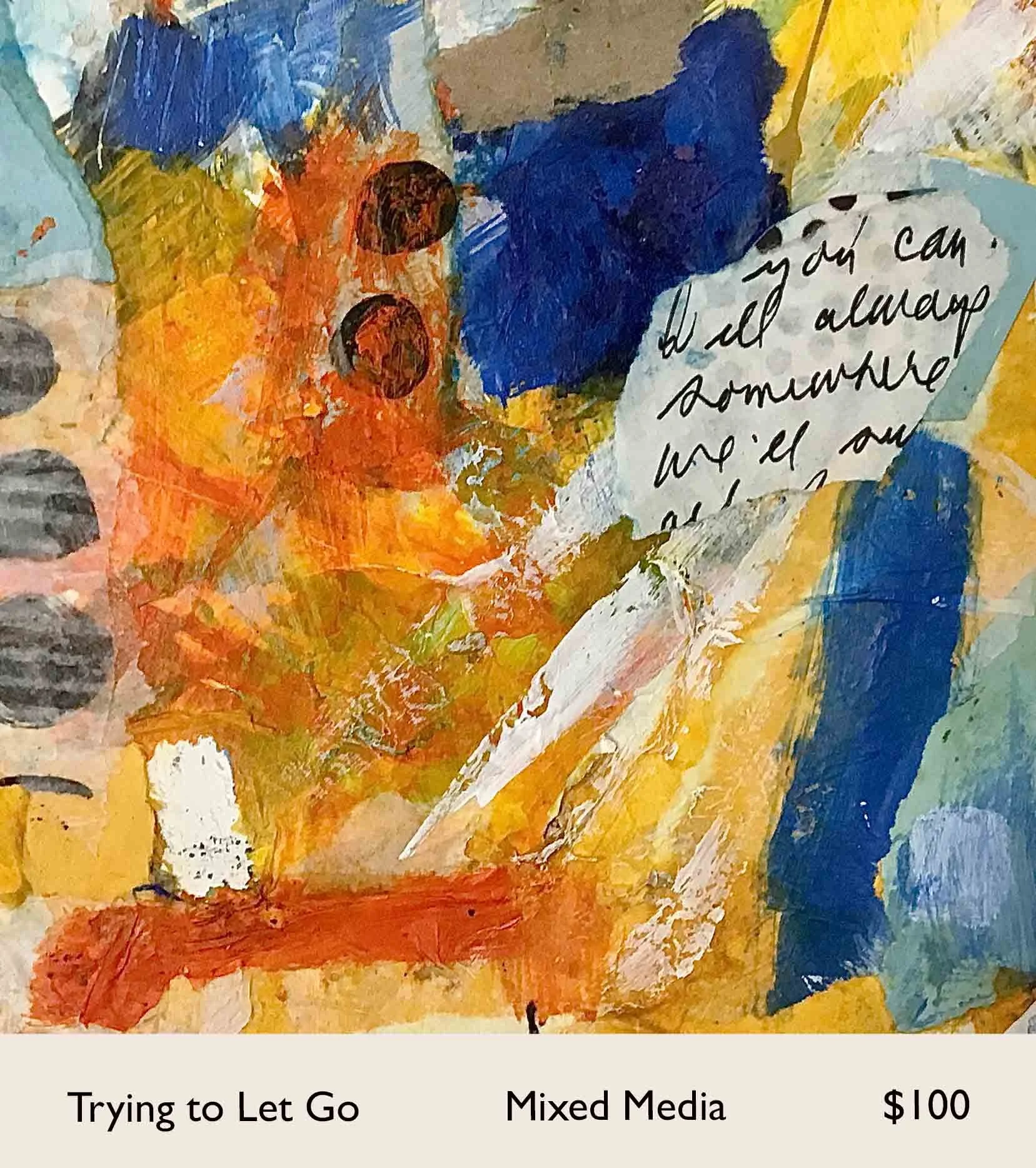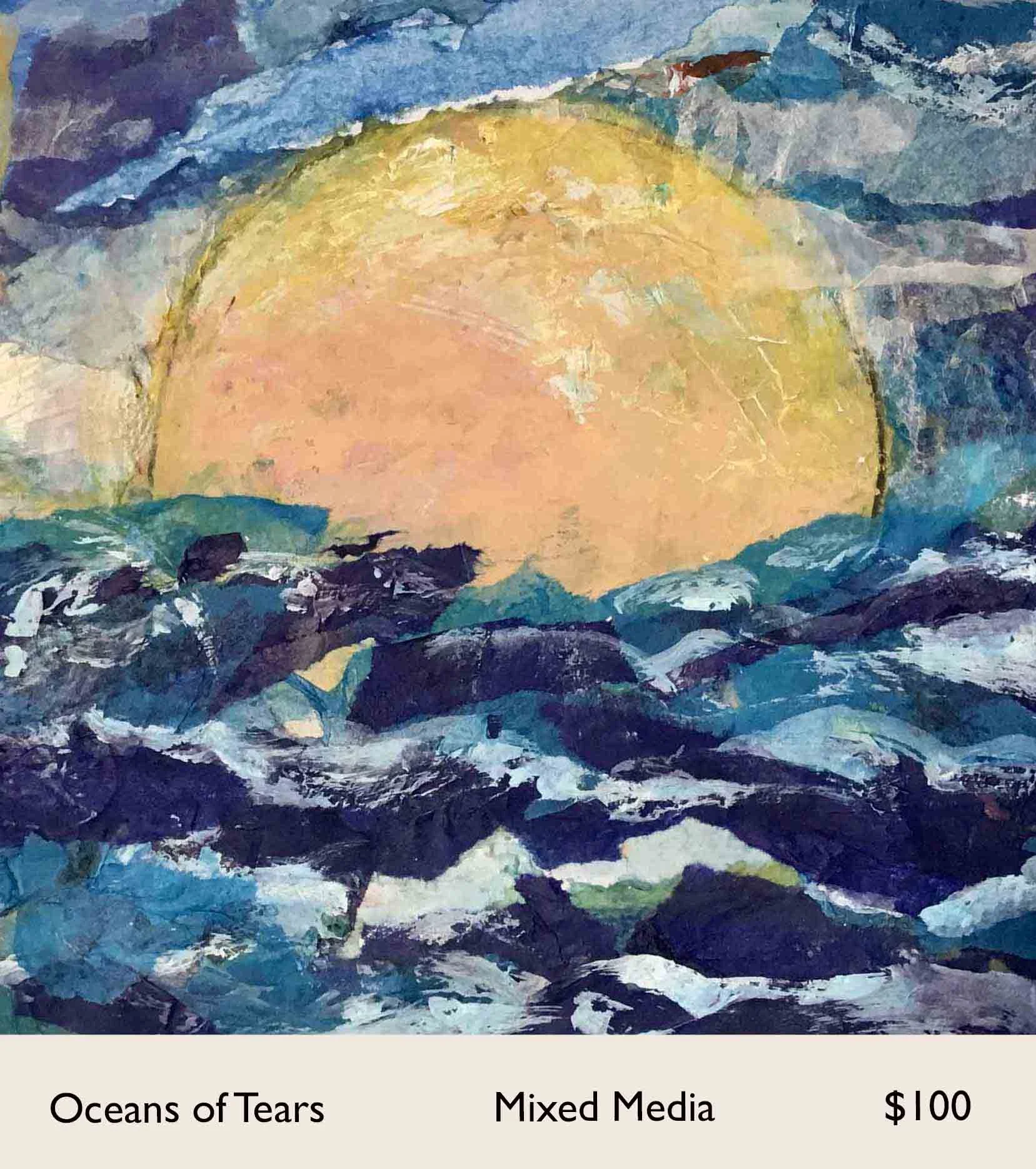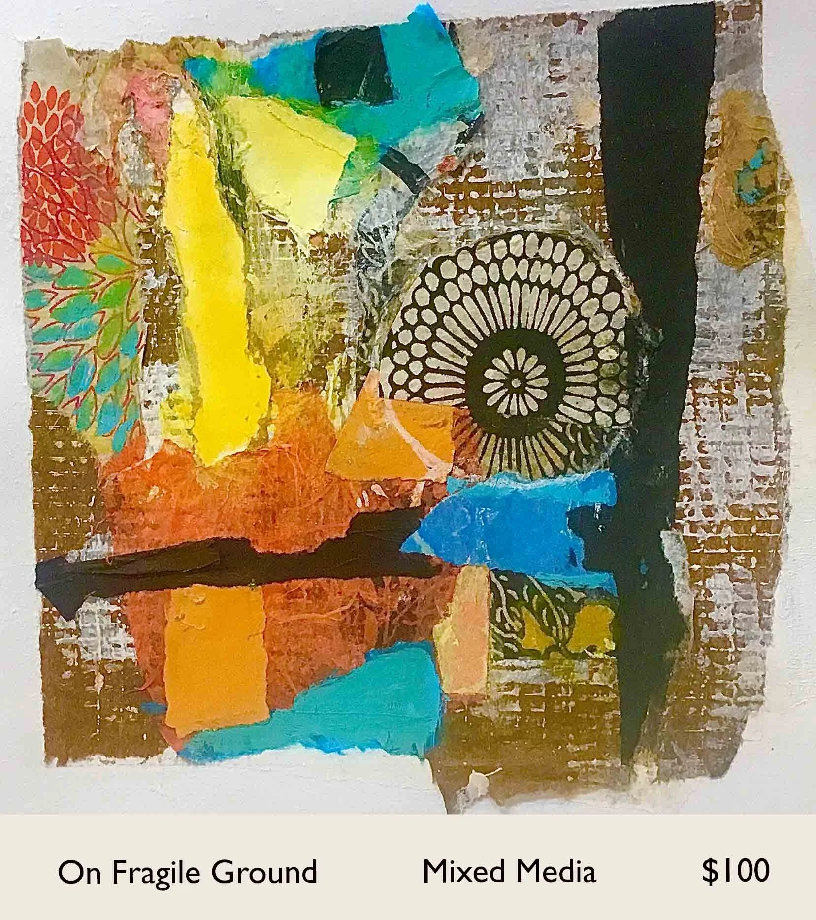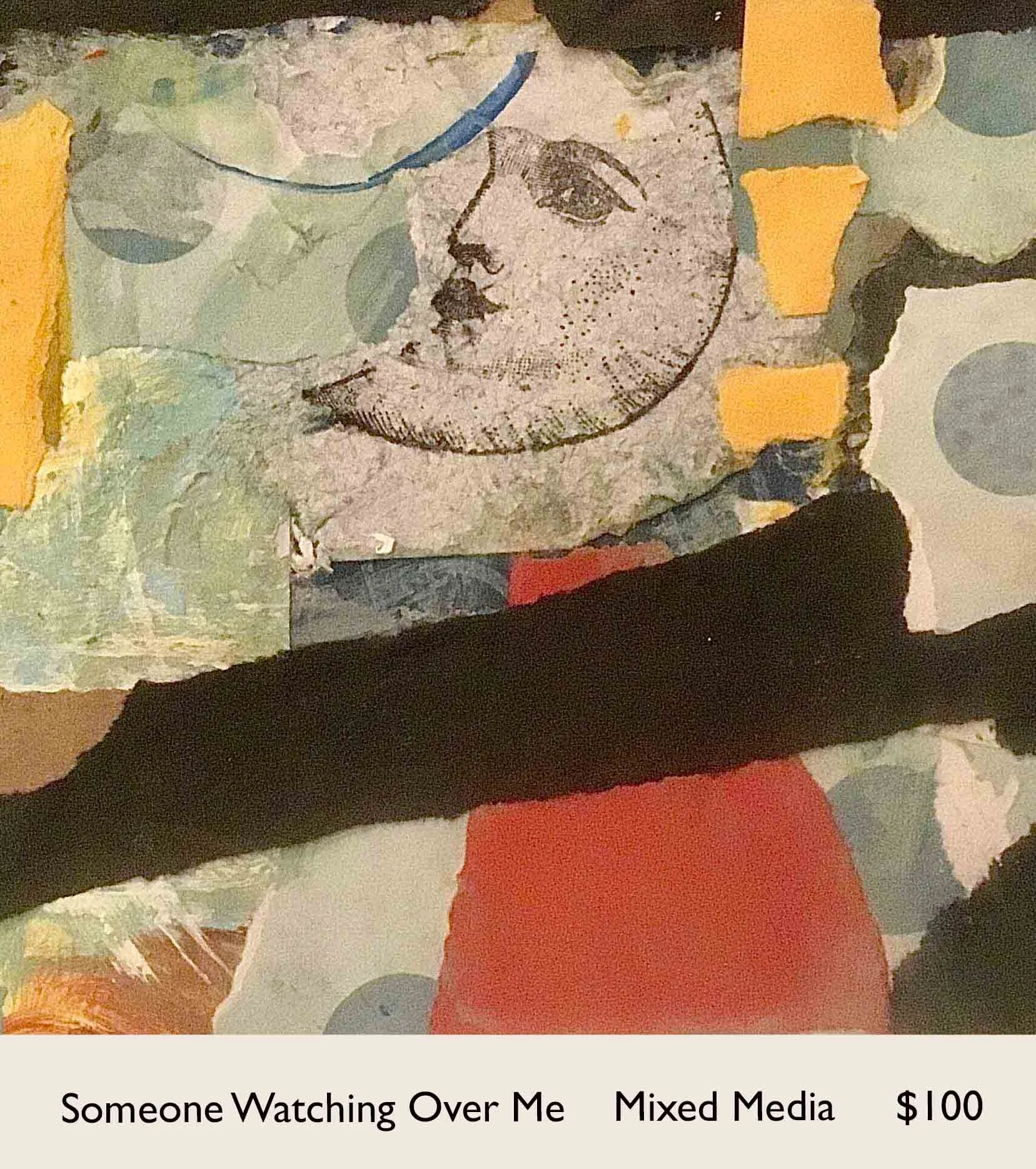 This series of collages is a new artistic departure for me. Creating these collages last winter offered me a respite from the grief of losing my life partner, Robert Benedict, in 2022. The creative process helped me lose all sense of time and the collages emerged as deeply personal expressions of loss and hope.