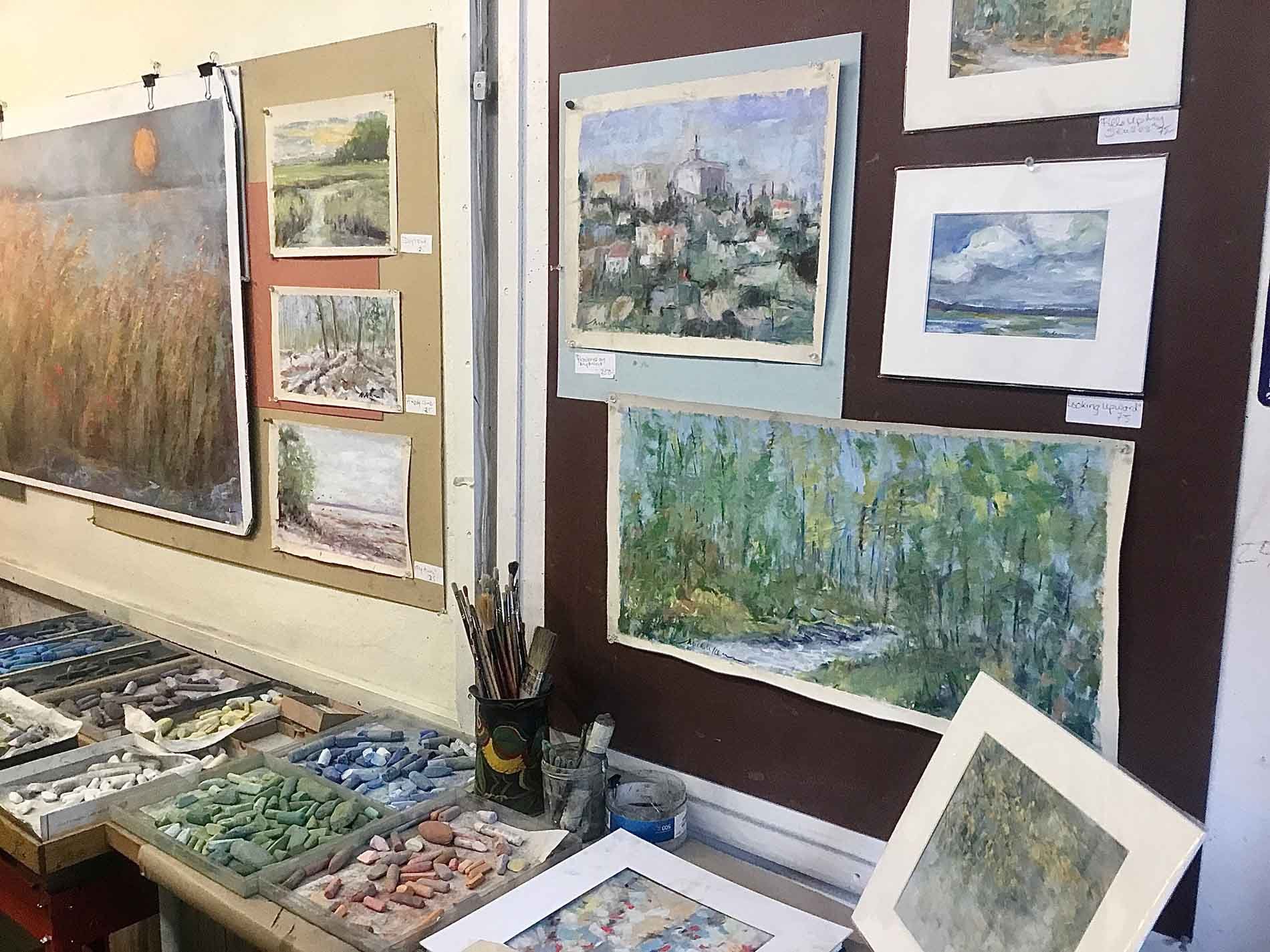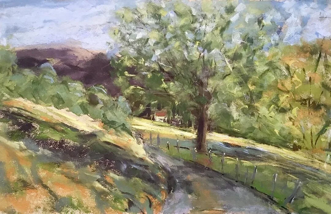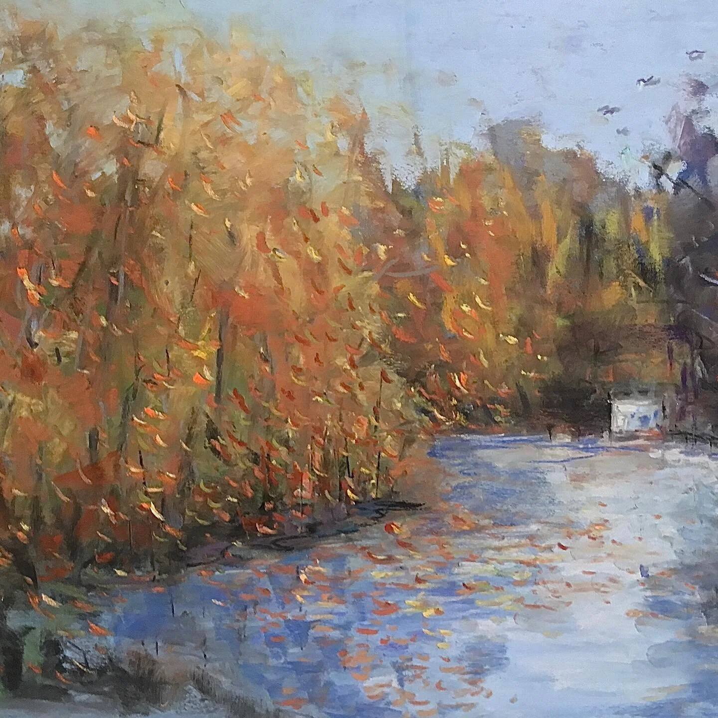 Whether it is winter with its silent soft blanket or a vibrant autumn scene, I am lost in the beauty of the landscape and can escape the difficulties and challenges of life. My pastels, whether done in my studio or “en plein air,” reflect the feelings brought out in me by the light, mood and atmosphere of the landscape. There is great healing in making art while grieving.